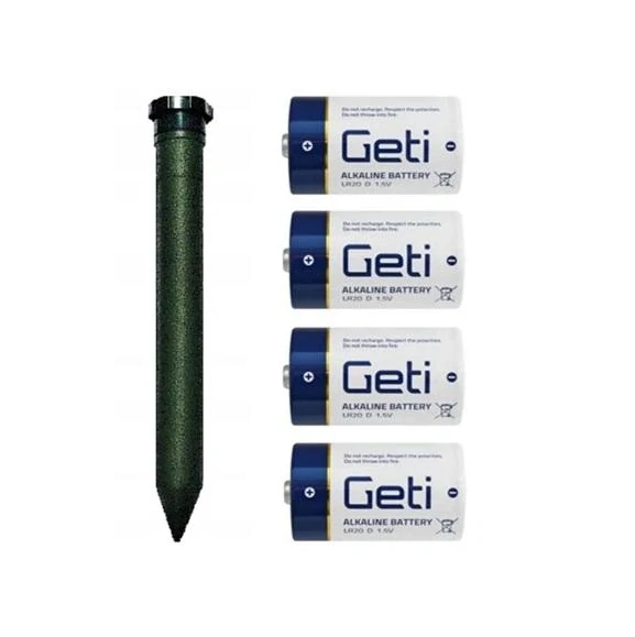 Jednoduchý, spolehlivý a účinný odpuzovač, který je napájen z 4x 1,5V monočlánek D. Instalace je jednoduchá, stačí jen zasunout do země, kam vysílá pro tyto živočichy odpuzující vibrace. Ty je odpudí na dostatečnou vzdálenost. Lidem ani domácím zvířatům tyto vibrace nijak neškodí.